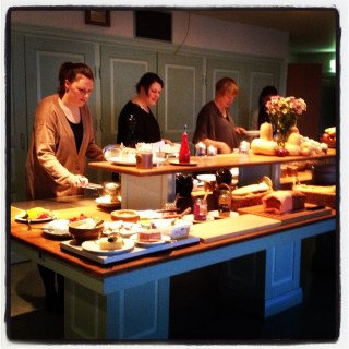 Efter det högg vi in på frukosten. En av deltagarna fick väckas eftersom hon hade läst halva natten.