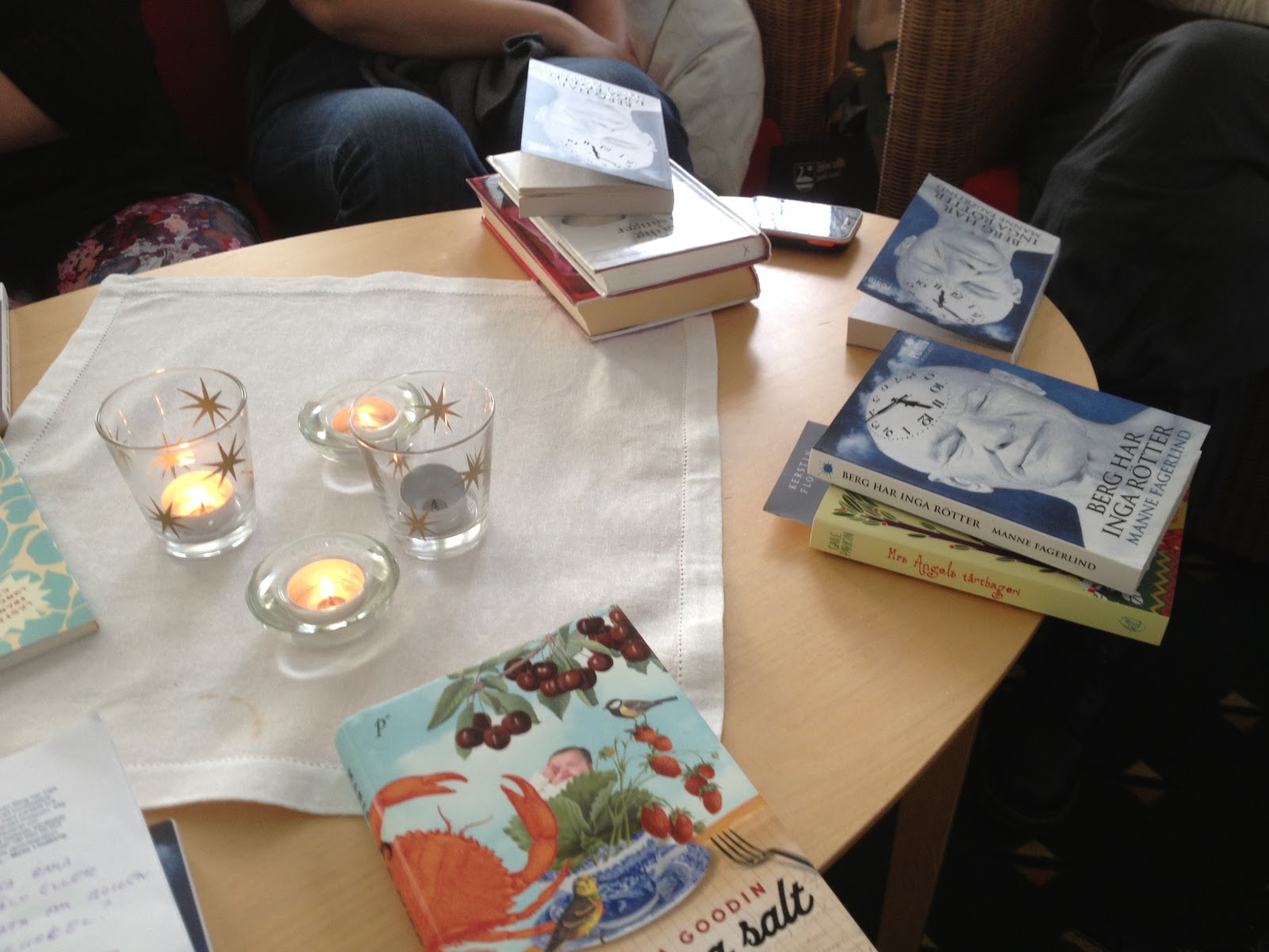 Innan lunch samlades vi igen och samtalade om boken Berg har inga rötter av Manne Fagerlind. Det var en bra bok att samtala kring och och det fanns flera helt olika åsikter om huvudpersonen. Jag återkommer med våra tankar om boken i ett senare inlägg.
