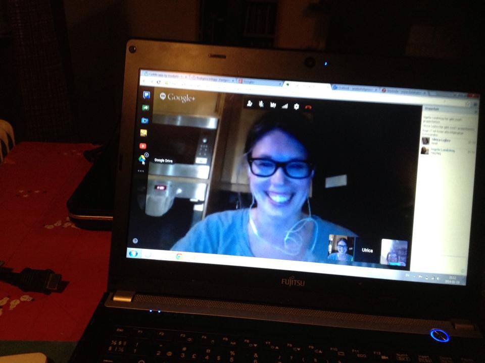 hangoutingelaI går kväll träffades jag och sidekickarna Ingela och Ulrica via Google Hangout och testade att bokcirkla på det viset. Det gick bra och det var roligt att få träffas ”live”. Tidigare har vi ju bara sett varandras profilbilder på Facebook. Extra roligt var det när jag råkade komma åt en knapp och fick glasögon och hatt och Ingela fick ett google-pannband. Det lättade upp stämningen och det var svårt att vara seriös 🙂